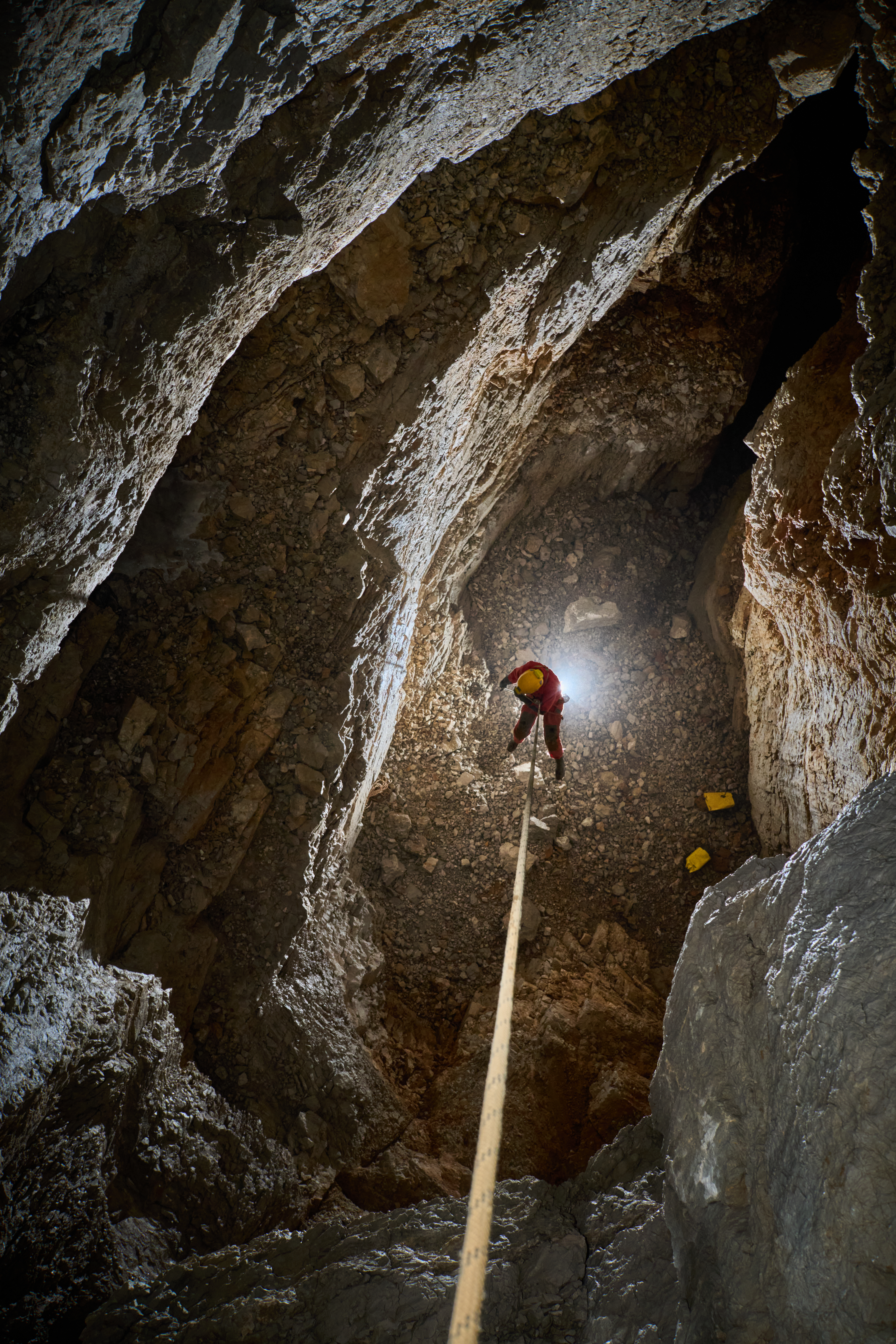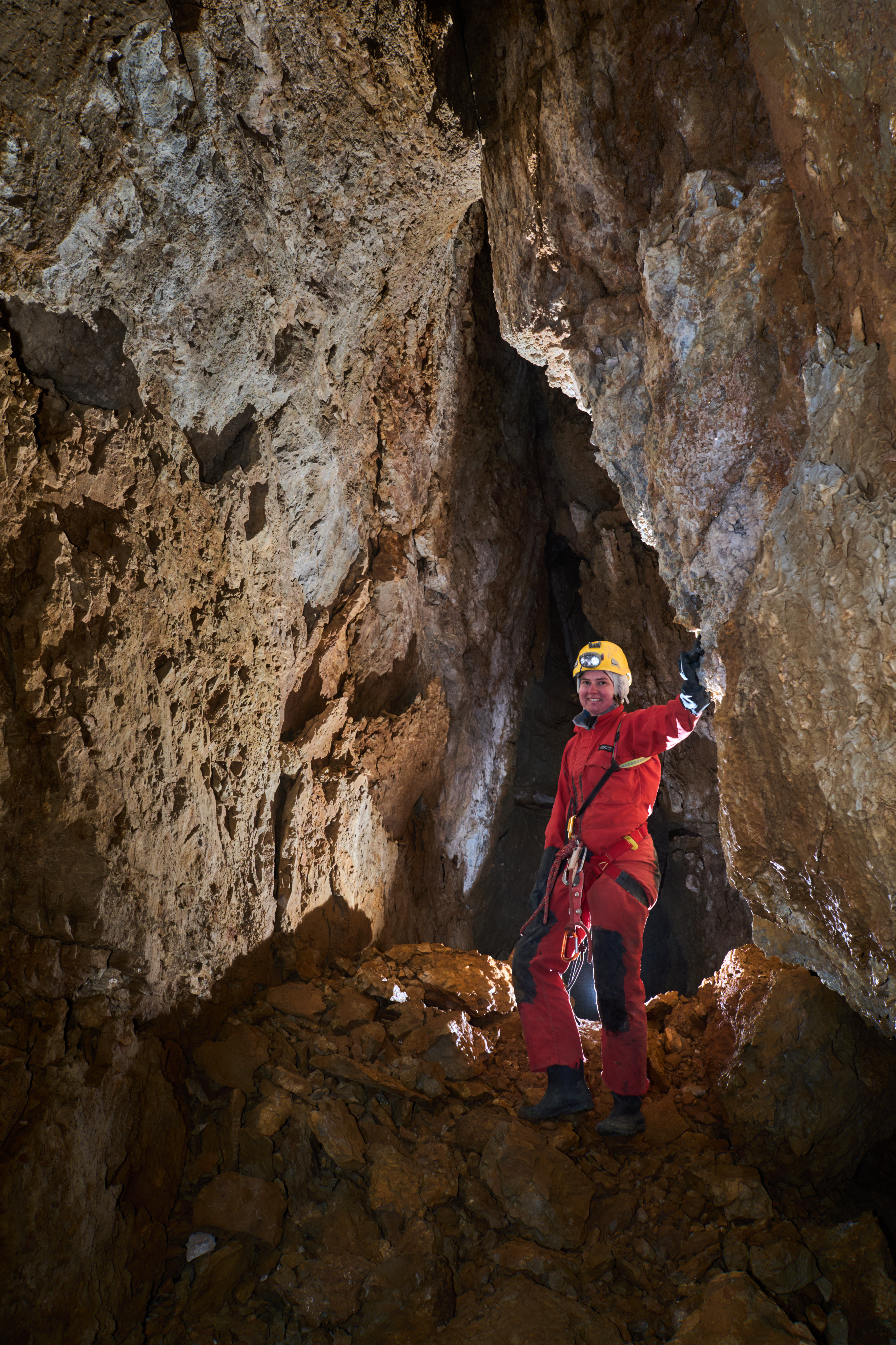 Tri metre naprej naju je pričakala petmetrska stopnja, navzdol, rov se je odprl v kamro. Skoraj bi se jo dalo prosto preplezati, a sva se vseeno dolgo zamudila, da sva jo opremila, saj so stene močno krušljive. Pod stopnjo se je rov ožil in se po treh metrih prevesil v brezno, očitno pregloboko za opremo, ki sva jo imela pri sebi. Na povratku sva jamo izmerila in Tim se je pritoževal, ker se jama nadaljuje, češ da ima navado delo dokončati že ob prvem obisku. Še zdaj ne vem, koliko je bil sarkastičen in koliko resen.